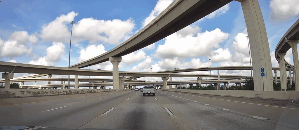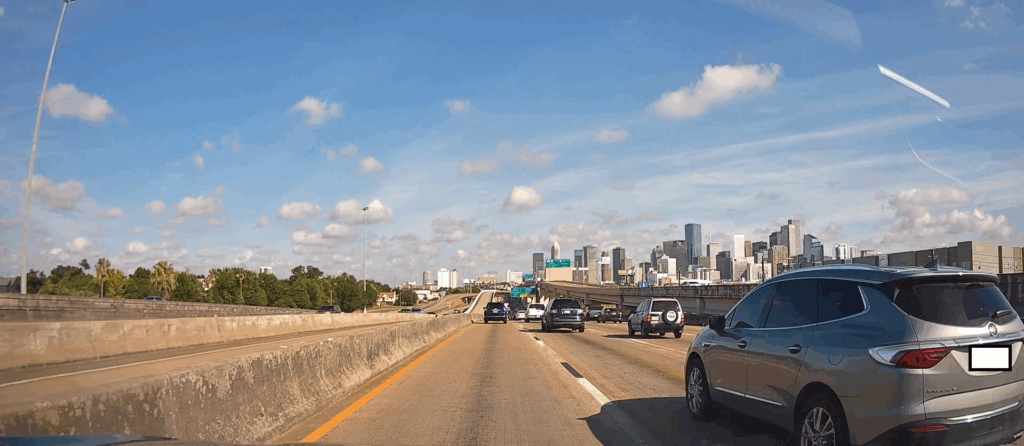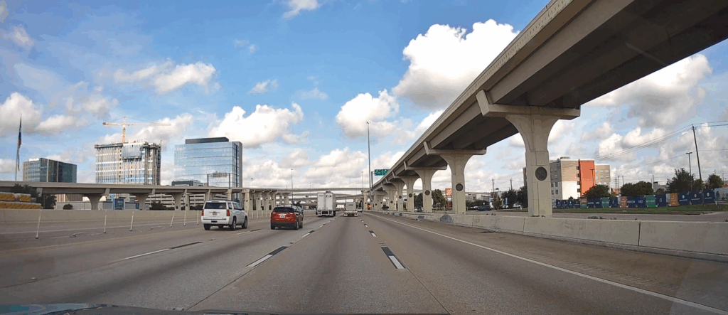 ↑ヒューストンを出発してすぐ、右手にヒューストンの大都市が見えてきました。