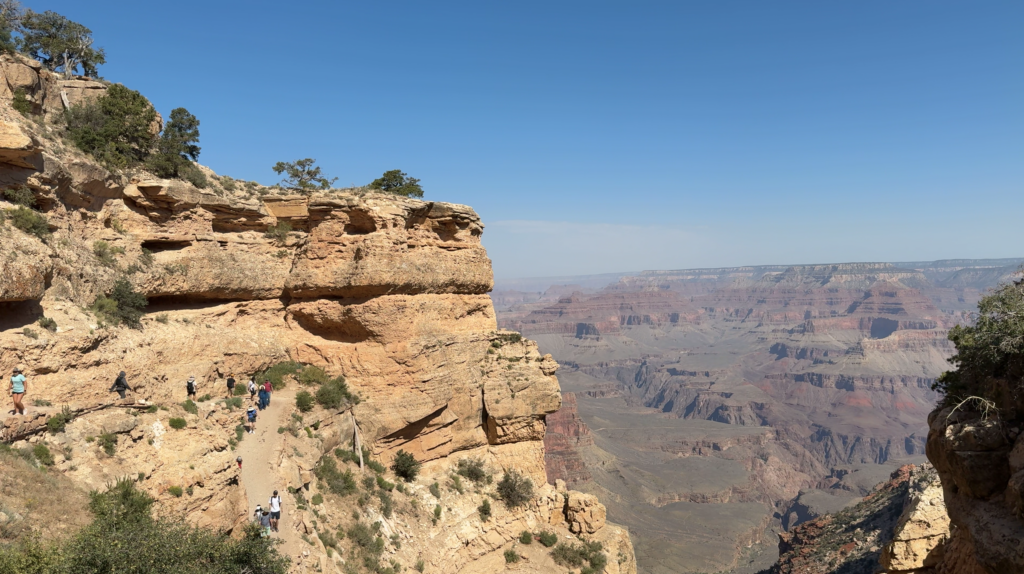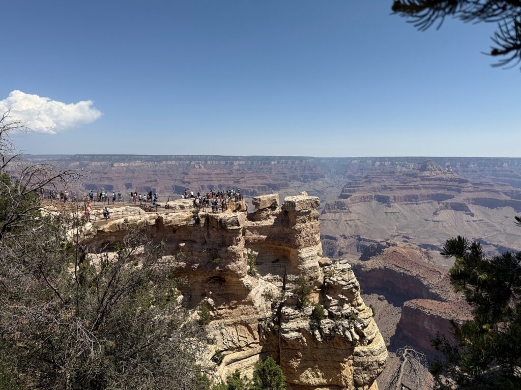 サウスリムの代表的な展望スポットで、柵の向こうに広がる渓谷の景色は息を呑む美しさがありました。