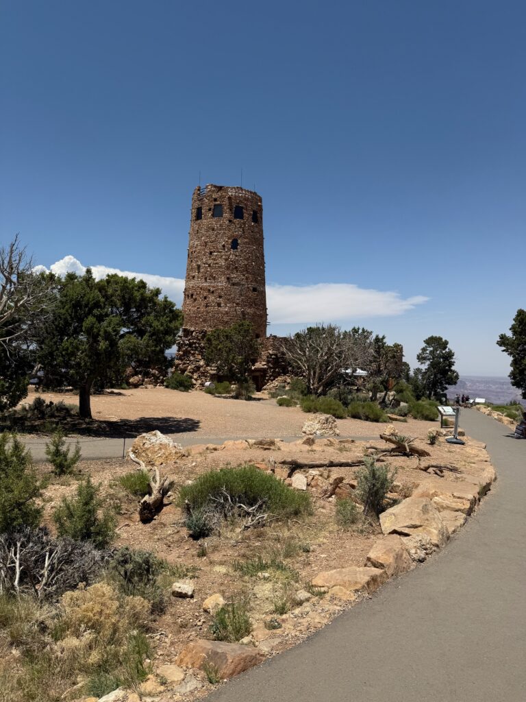 石造りの塔と雄大なグランドキャニオンの景色が重なる Desert View は、まるで絵画のような美しさでした。