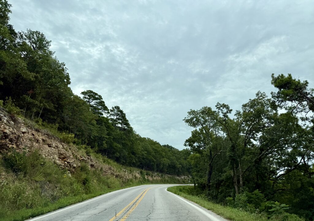 オクラホマ州からユーレカスプリングまでは車での移動が便利です。街はアーカンソー州北西部のオザーク山地の丘陵地帯にあり、周辺の道路はカーブの多い山道が続きます。日本の山道に似た雰囲気の区間もあり、運転には注意が必要です。