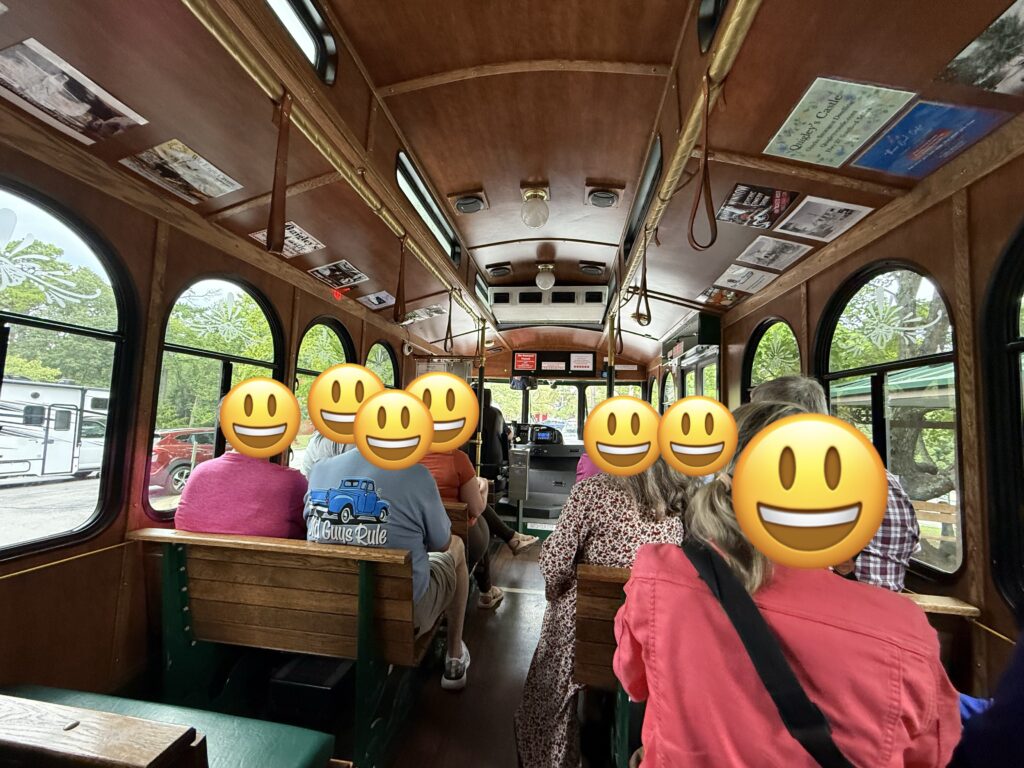 トロリーはレトロでおしゃれなデザインのバスで、乗るだけでも気分が上がります。後ろのデッキに出ることもでき、風を感じながら街並みを楽しめるのも魅力のひとつです。