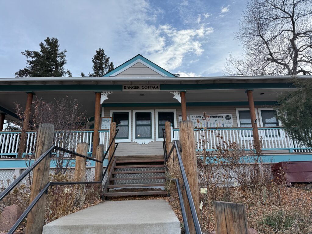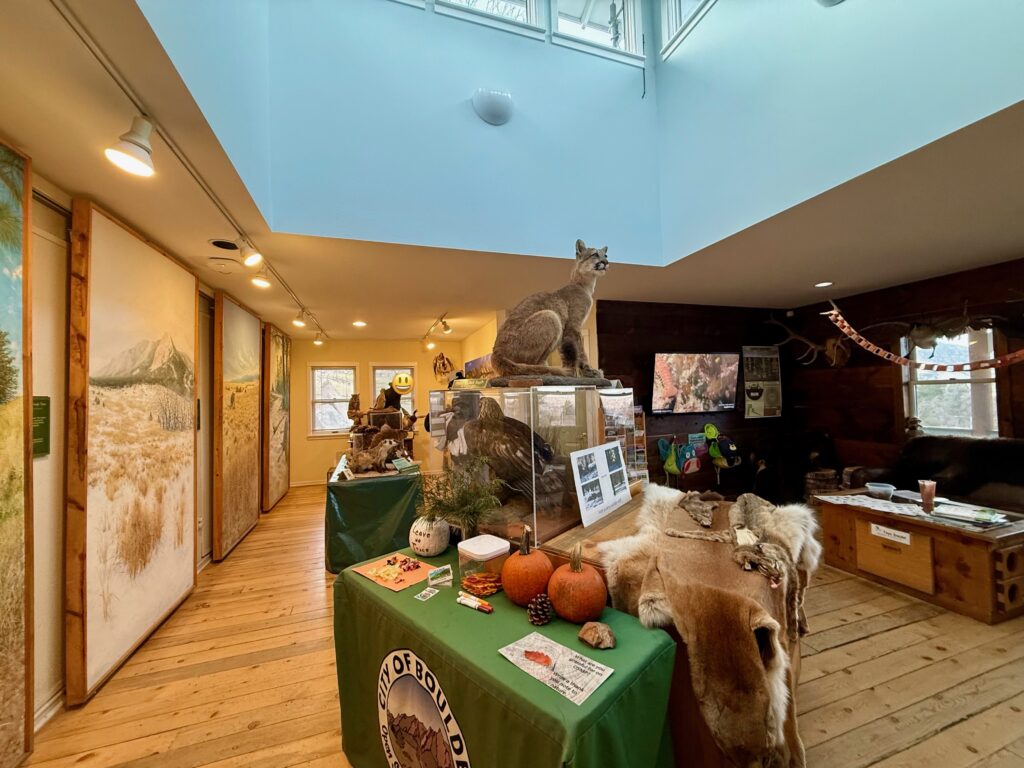 Chautauqua Ranger Cottage は、ハイキングの出発点となるビジター施設。トレイル情報や地図を入手できるほか、フラットアイアンズを間近に望む絶景スポットでもあり、Chautauqua Park観光の拠点となる場所です。館内には、動物の剥製も展示がしてありました。