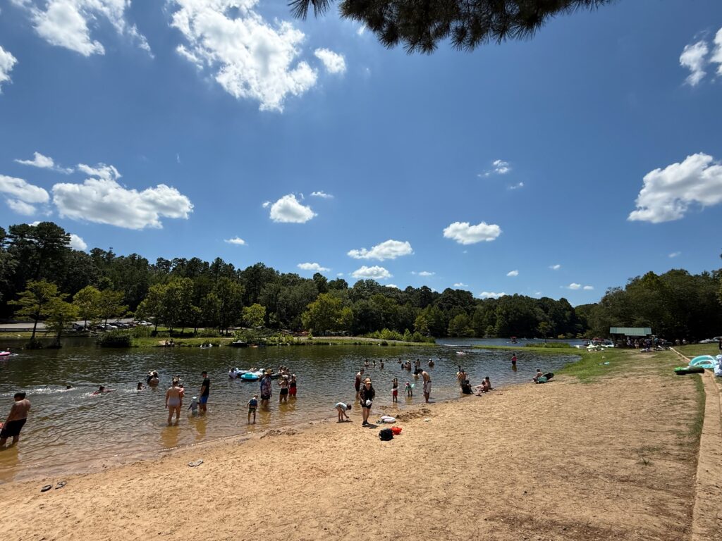 公園内のビーチエリアは駐車場の目の前にあり、トイレやシャワーも完備。夏のシーズンには、湖での水遊びやカヤック、ボートを楽しむ家族連れで賑わいます。砂浜も整備されているので、小さな子どもも安心です。