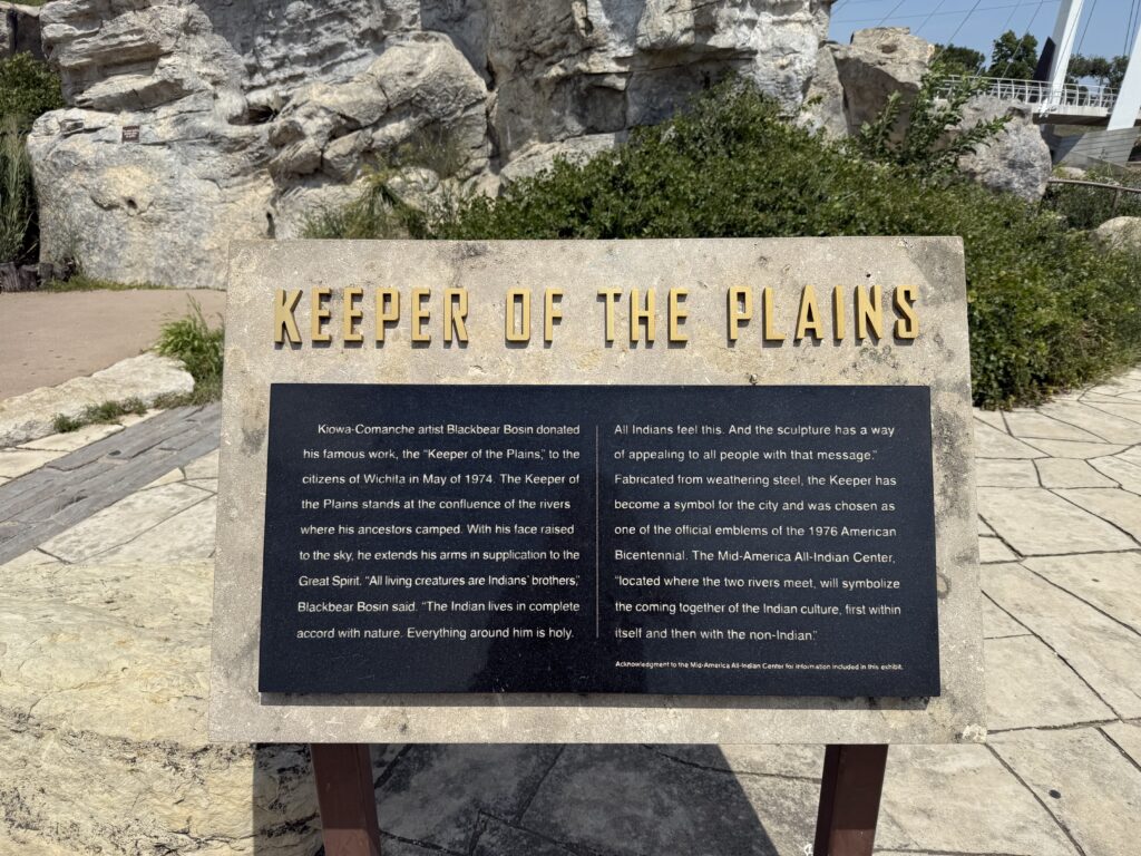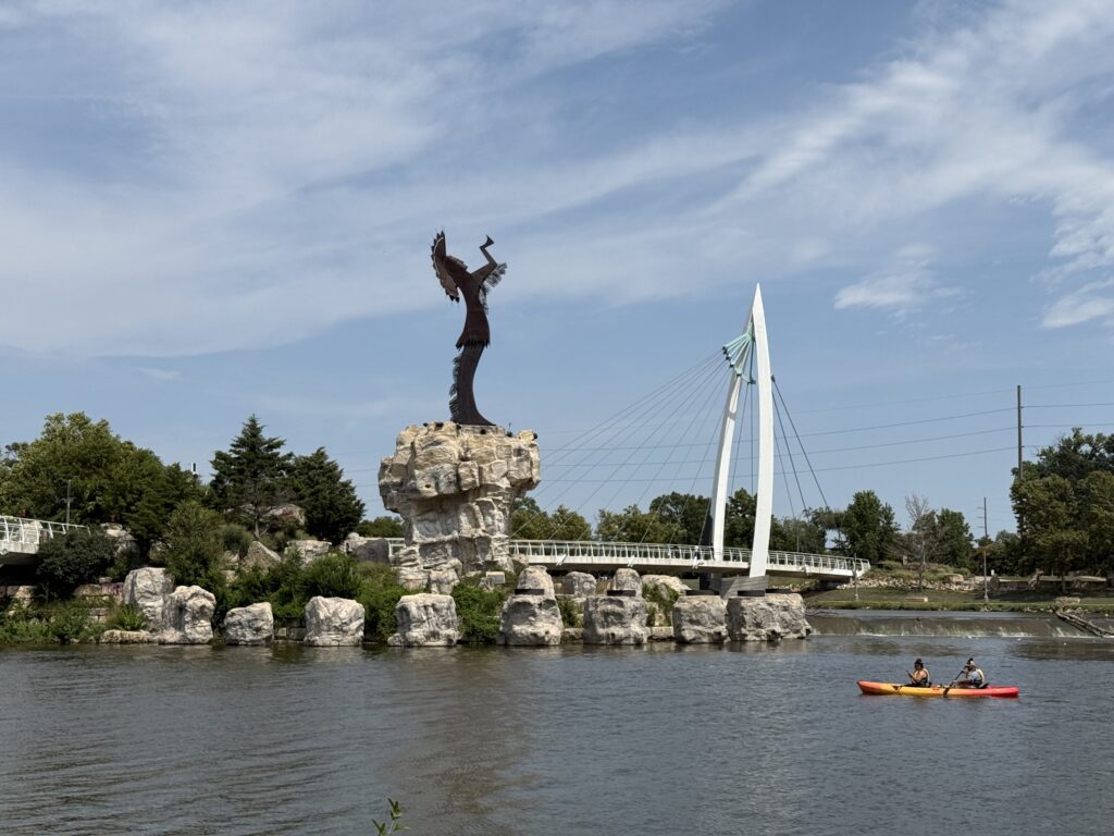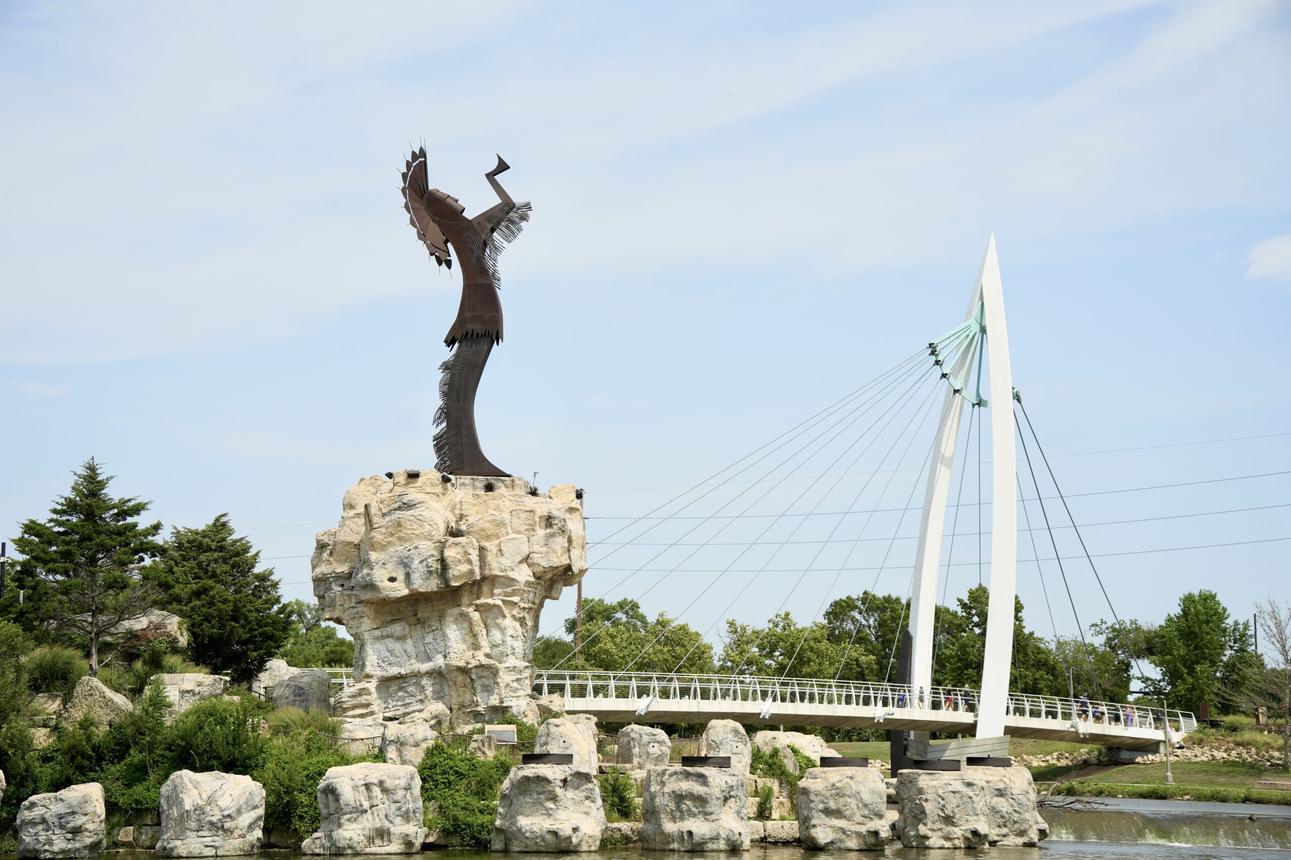 高さ約13メートルのこの彫刻は、アーカンソー川とリトルアーカンソー川が合流する場所に建てられています。